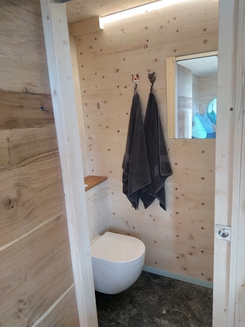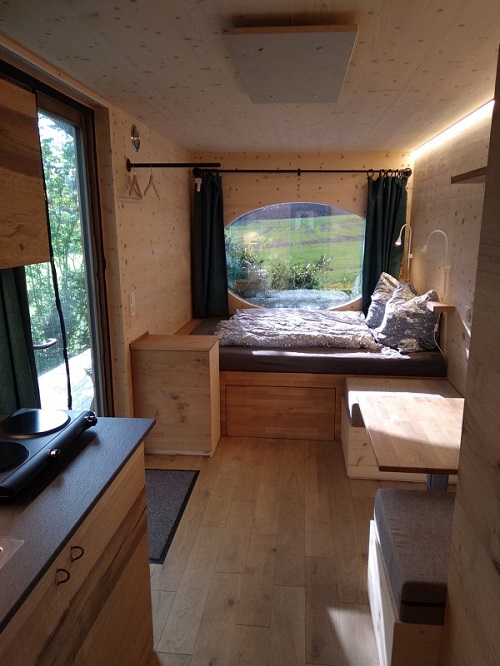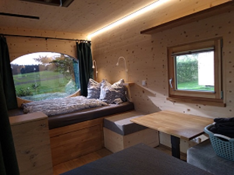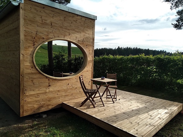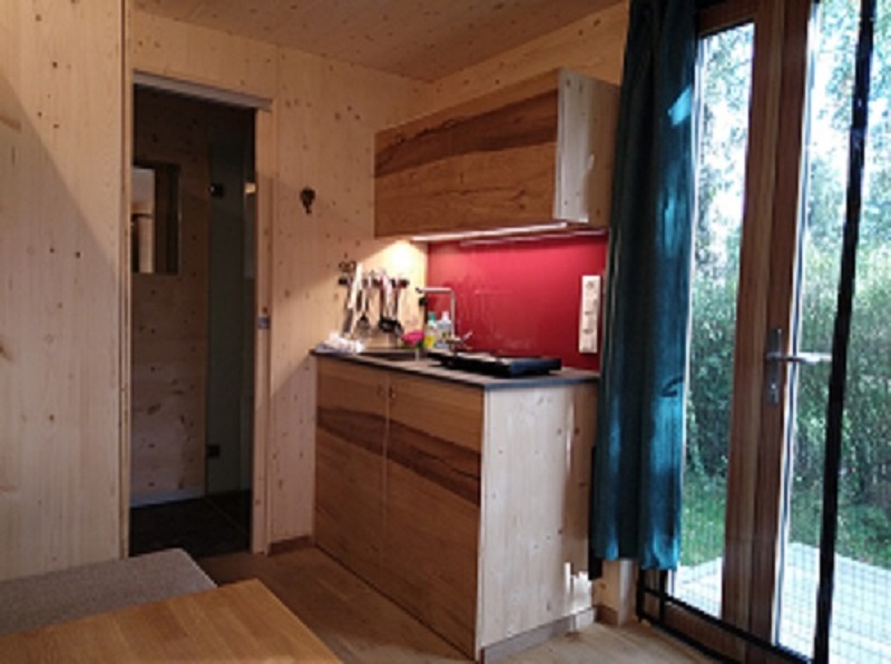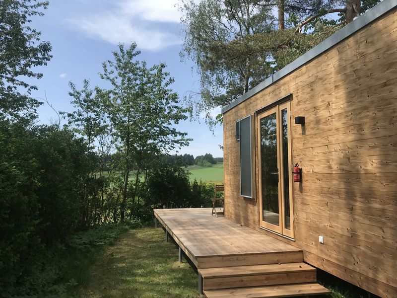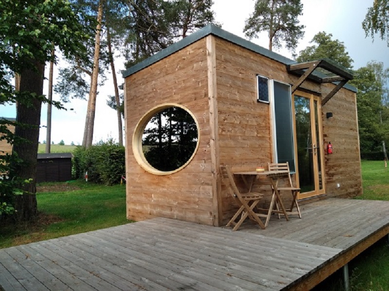Our Zinipi-Tiny Houses offer you peace and quiet recration. Located in the north-western part of the campsite, you have a wonderful view of the fields, woods and meadows from your own veranda as well as through the stylish window.